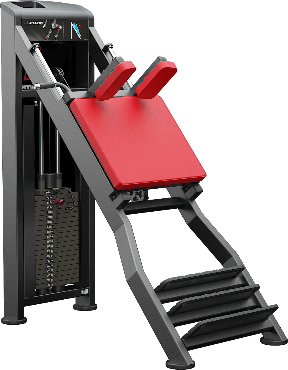 Az Atlantis Strength M318 Incline Calf Raise gép lineáris csapágyazású kialakítása simább mozgást biztosít használat közben. A három különböző kezdő pozíció lehetővé teszi, hogy különböző magasságú felhasználók is kényelmesen használhassák a gépet. Az egyedi szögű pozíció csökkenti a gerinc kompresszióját az edzés során, így növelve a kényelmet és a biztonságot.