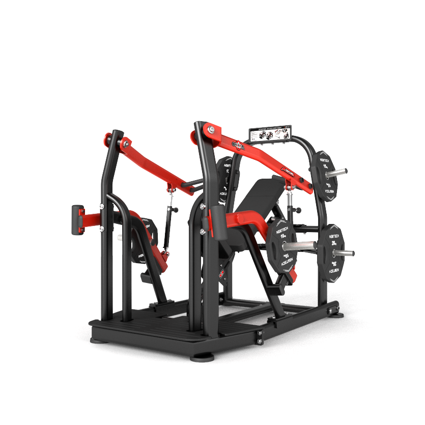 Leírás: A Newtech Incline Chest Press gépe kifejezetten a felső mellizmok fejlesztésére lett tervezve. Az ergonomikus kialakítás és a prémium anyagok biztosítják a kényelmes és biztonságos edzést. A gép súlyszabályozása eredeti súlyzótárcsákkal történik, és egyérintéses székállítással rendelkezik, hogy a felhasználók könnyedén beállíthassák az optimális pozíciót.
