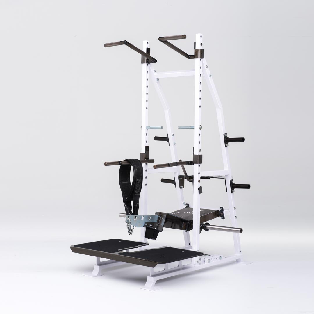 A TALL FRAME PIT SHARK alapfelszereltséggel rendelkezik minden szükséges fogantyúval. Tartalmaz szabványos (1,5 hüvelyk átmérőjű) húzódzkodó fogantyúkat és tolódzkodó fogantyúkat. Emellett guggoló fogantyúkat és egy csípőövet SpeedHook-kal is tartalmaz. Ez egy hihetetlen edzőeszköz, amely lehetővé teszi az erőnléti edzést a gerinc tehermentesítése mellett.