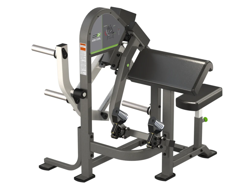 A Plate Loaded | Arm Curl gép könnyű beállítást kínál több ülésmagasság opcióval és a forgási tengely jelölésével, hogy segítse a megfelelő beállítást. Mint minden Prime Selectorized és Plate Loaded gép, ez is fel van szerelve a Smart Strength Technology-val, amely lehetővé teszi a felhasználók számára az ellenállási profil manipulálását, hogy a gyakorlat különböző szakaszaiban maximális terhelést érhessenek el. Lehetőség van 360 fokban forgó fogantyúk (Standard Grip vagy KAZ Handles) használatára.