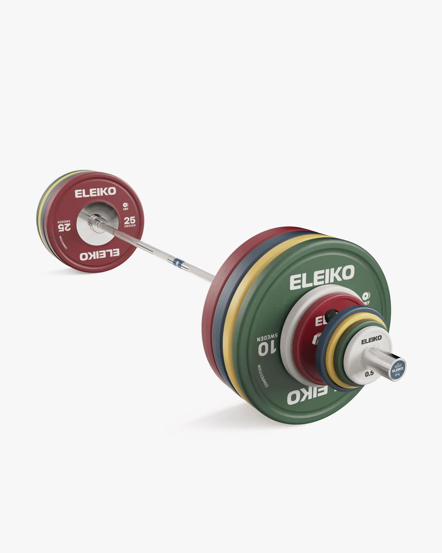 Az Eleiko IWF Olimpiai Súlyemelő Verseny Készlet minden szükséges eszközt egyetlen kényelmes, problémamentes csomagba foglal az verseny felállításához. Ez a 190 kg-os NxG készlet tartalmazza a 20 kg-os IWF minősítésű NXG Verseny Súlyzónkat, egy készlet IWF Súlyemelő Verseny Súlylemezeinket, amely tartalmaz egy párt a 2,5 kg-tól 25 kg-ig terjedő súlylemezekből és a 0,5 kg-tól 2,0 kg-ig terjedő súlyváltoztató lemezeket, valamint egy készlet IWF minősítésű verseny zárókarmokat.